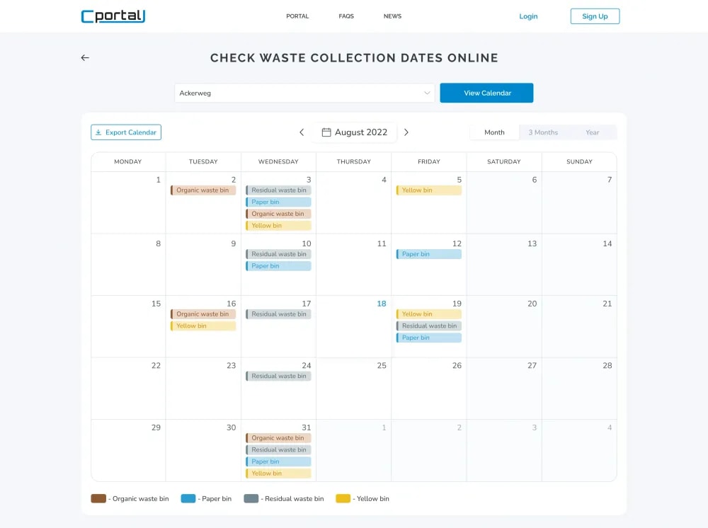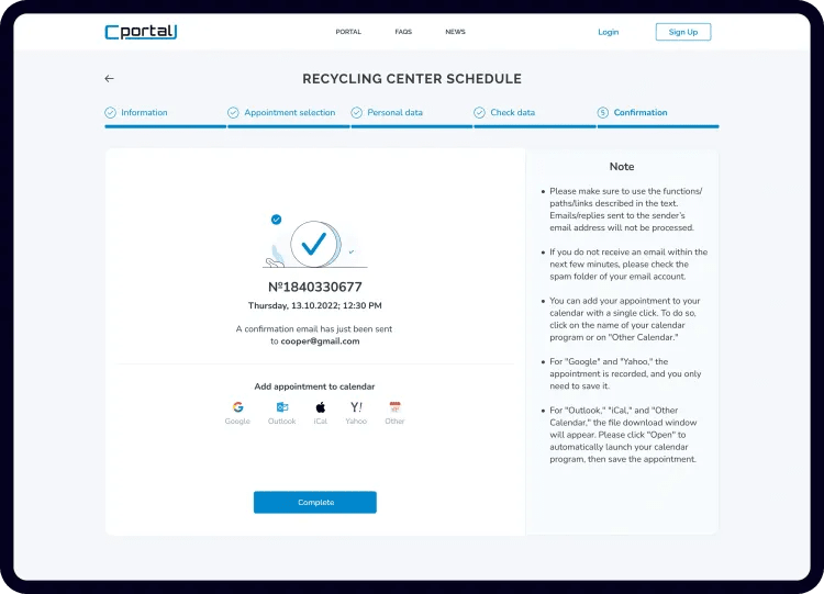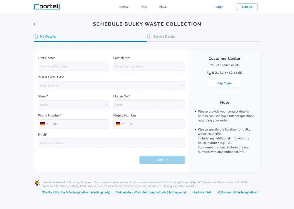 C-Portal lets residents and the municipality handle waste and schedules through a quick, predictable online experience that saves time and builds trust.
